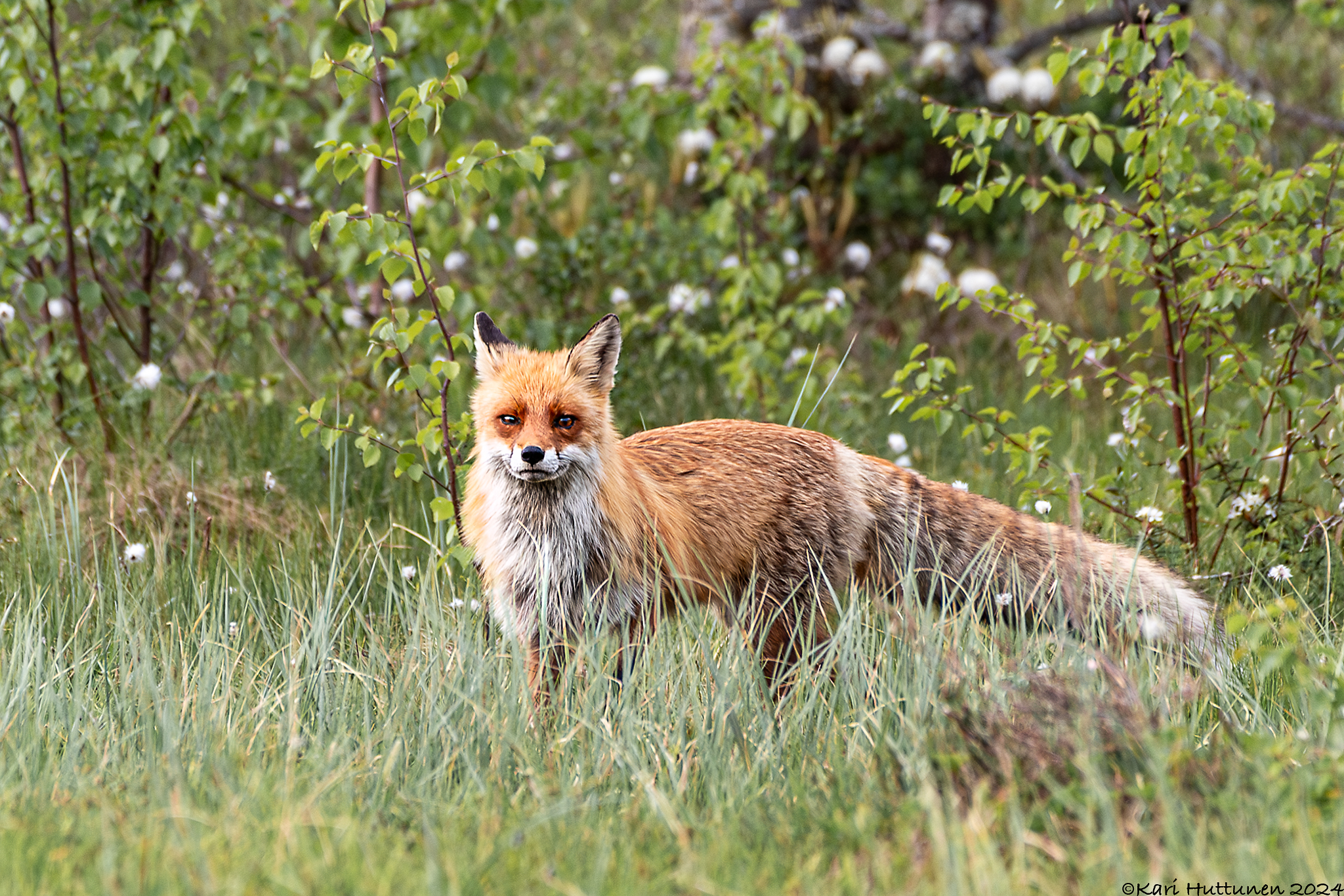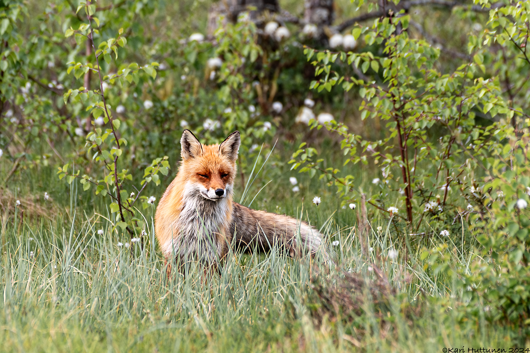 Puolen yön lähestyessä alkoi valo jo sen verran hiipua, että oli ”ruuvattava” kameran kennoon herkkyyttä lisää, jotta illan viimeiseksi jäänyt kuva telkästä saatiin vielä onnistumaan.