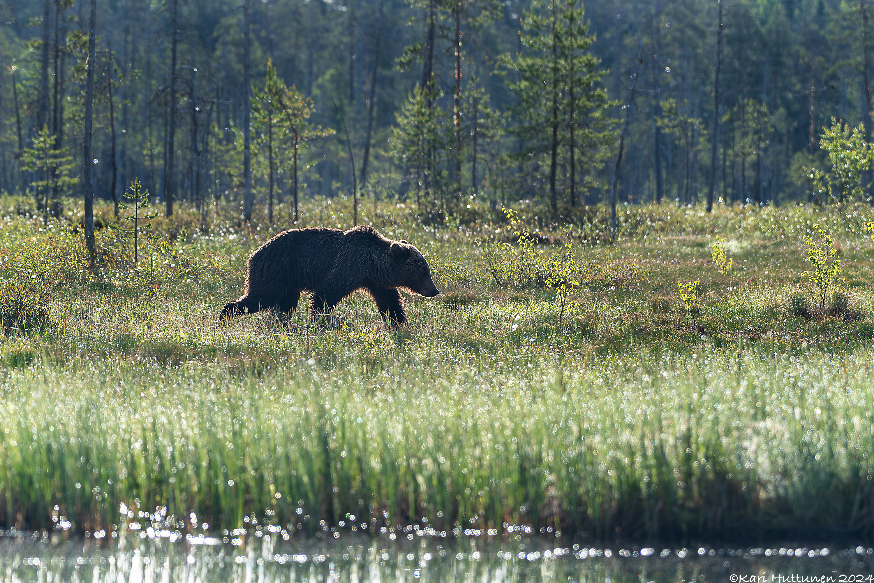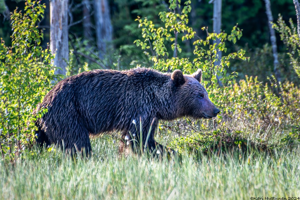 Kuvauspäivät alkoivat löytää rutiininsa ja olin taas jo klo 16 jälkeen syöneenä ja muutenkin valmiina jo kolmanteen kuvausyöhön. Keli oli tällä kertaa aika sateisen kostea, joten tiesin, että valoa olisi kuvaukseen aika niukasti. Päädyin kuvailemaan hieman erilaisia kuvia ja koetin saada niihin hieman kesäyön fiilistä mukaan. Ilokseni myös karhu osui kuvattavaksi.